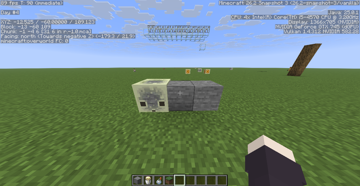 On Java Edition, if you apply invisibility effect to a sulfur cube containing a block, it will has the same scale and elevation as the normal block, this wasn't the case on Bedrock Edition.