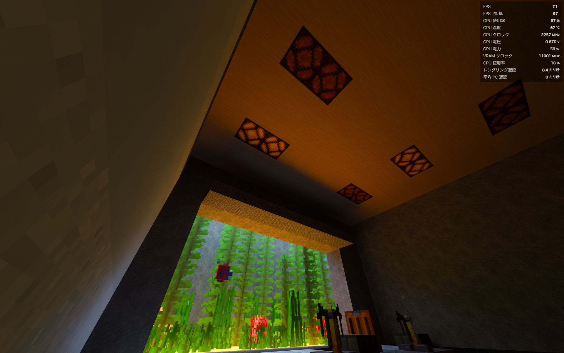 Observe emissive blocks, metallic-looking blocks, and other materials that are expected to demonstrate PBR / RTX effects.