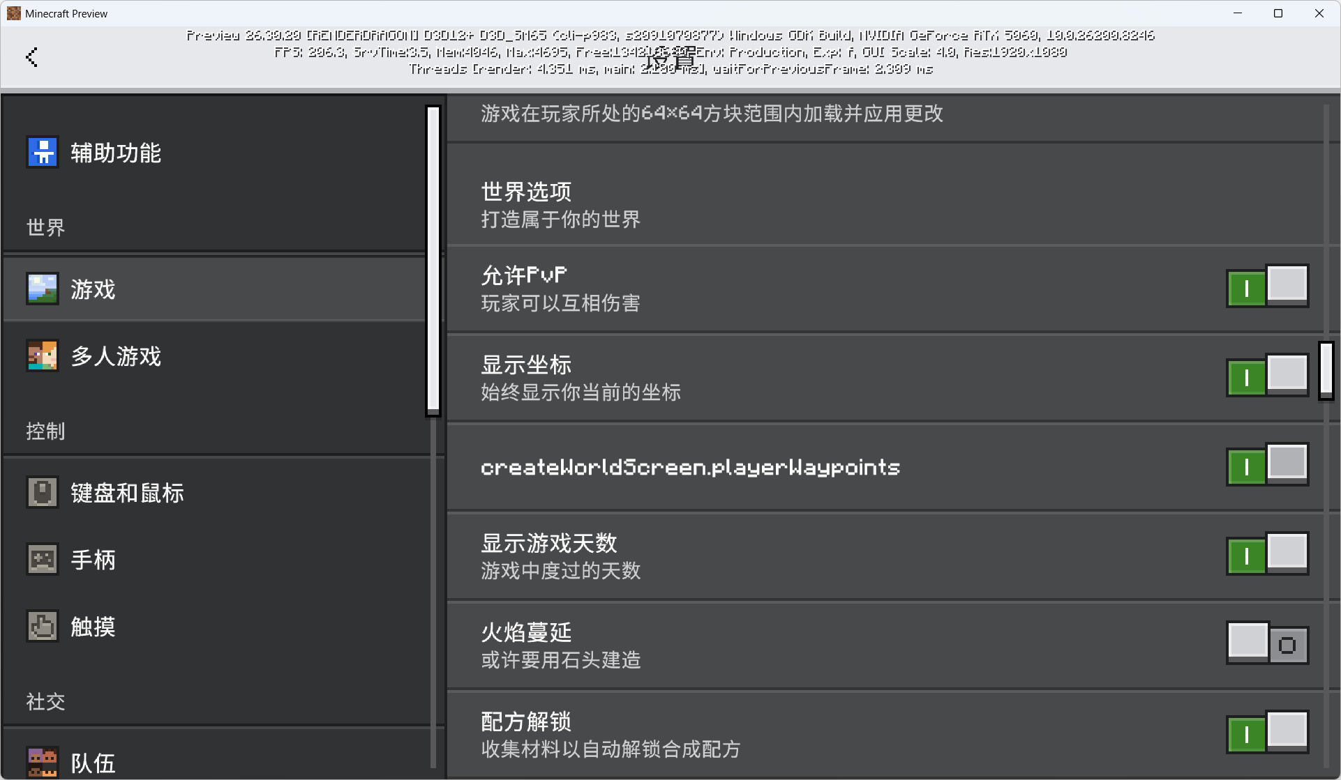When I go to the game settings, the Player Waypoints options only displayed the key name as "createWorldScreen.playerWaypoints" instead of the strings.
