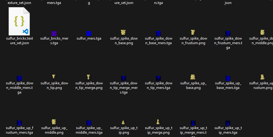 If you look into the game files, you will see that the MERS are not used because of the missing texture set json files, which cause the MERS to not be applied in game.