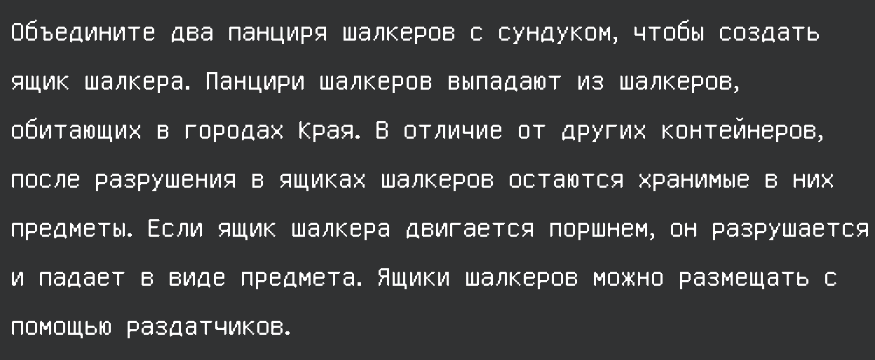 Item Naming: "Ender Dragon" is called both "дракон Края" and "дракон Эндера". "Shulker Box" is referred to as "ящик шалкера" instead of the standard "Шалкеровый ящик".
