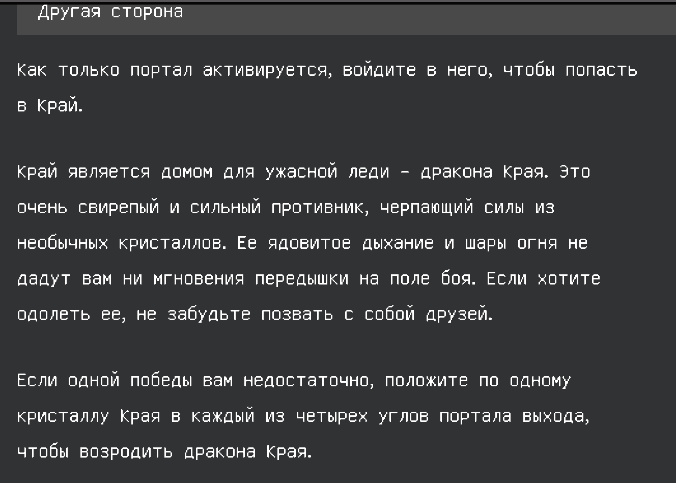 Terminology Chaos: The game switches between "Край" and "Энд" for "The End" randomly (e.g., "врата Энда" vs "корабли Края").