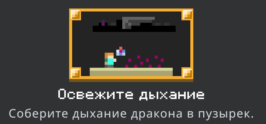 The Russian localization for the "The End" dimension and related items is inconsistent and lacks parity with Java Edition. Across several tutorial slides, the following issues are observed: