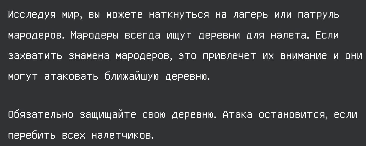 The Russian localization for the "Village & Pillage" mechanics in Bedrock Edition uses outdated and inconsistent terms that do not match the Java Edition.