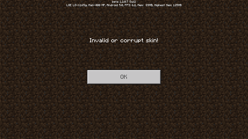 When you choose a custom skin it is placed wrongly and is only black. Nor can you enter a world with the error of the skin.