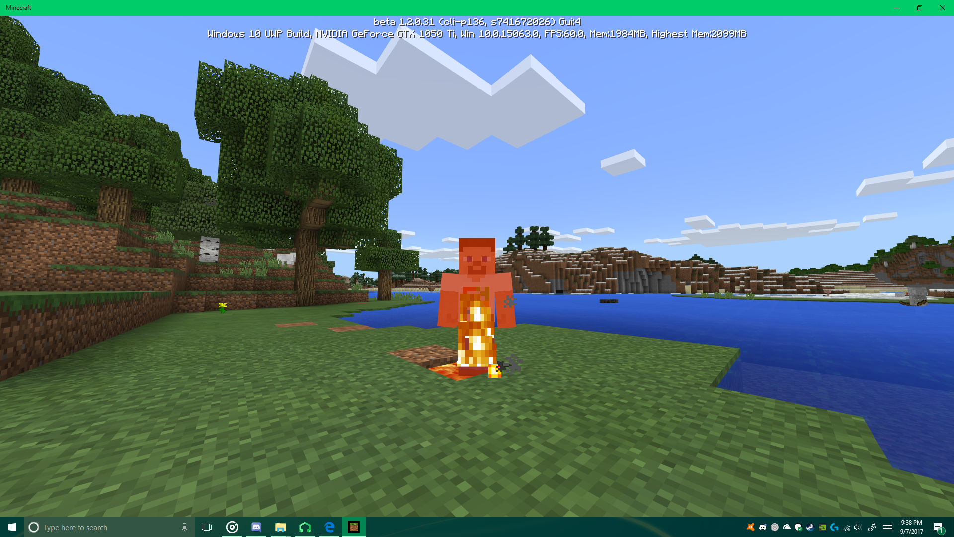 The fire particles on burning entities stay at the bottom of the entity and appear outstretched similar to Java Edition. This appears as very jarring compared to the particles in the latest stable release of bedrock. They also do not spawn smoke particles. Also when the HUD is turned on, the animation is sped up.