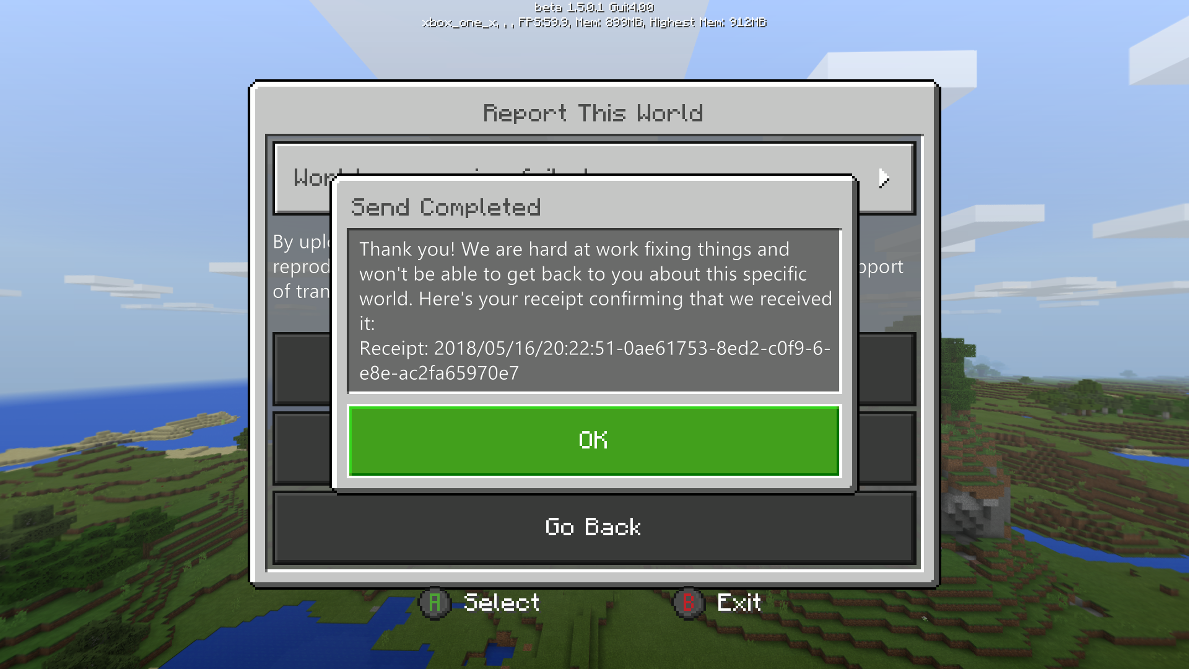 If you guys have trouble hover over your world and press Y then send the world to Microsoft.