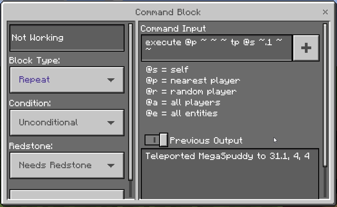 When trying to move a player by teleporting them by small amounts (Less than 1, eg 0.5 blocks), they do not move incrementally as they should.