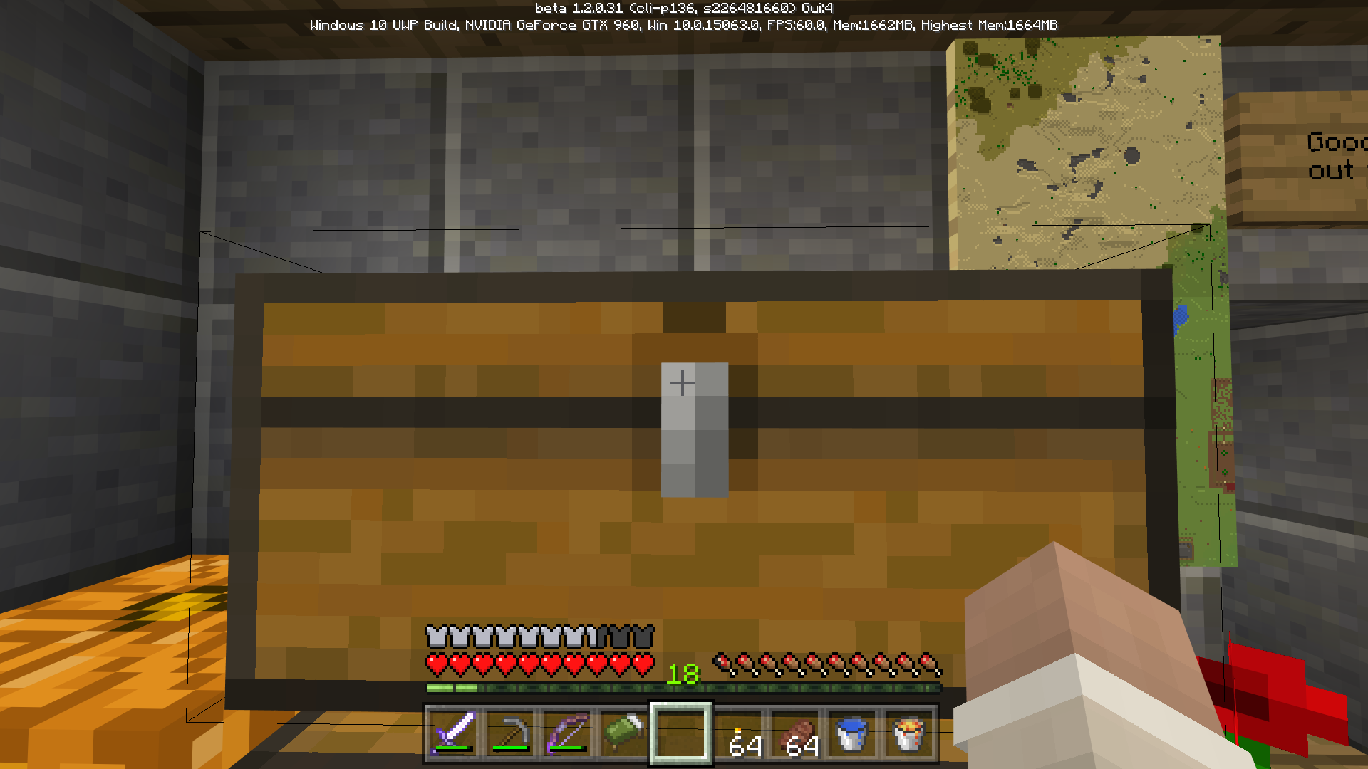 When you place two chests next to each other, the resulting large chest has an unclickable "seam" in the middle where the two small chests are joined. You can see from the screenshots that when I have my cursor slightly to the left or right of center, the chest bounding box is visible, but when it is over the middle region the bounding box disappears. In that condition, right-click will not open the chest.