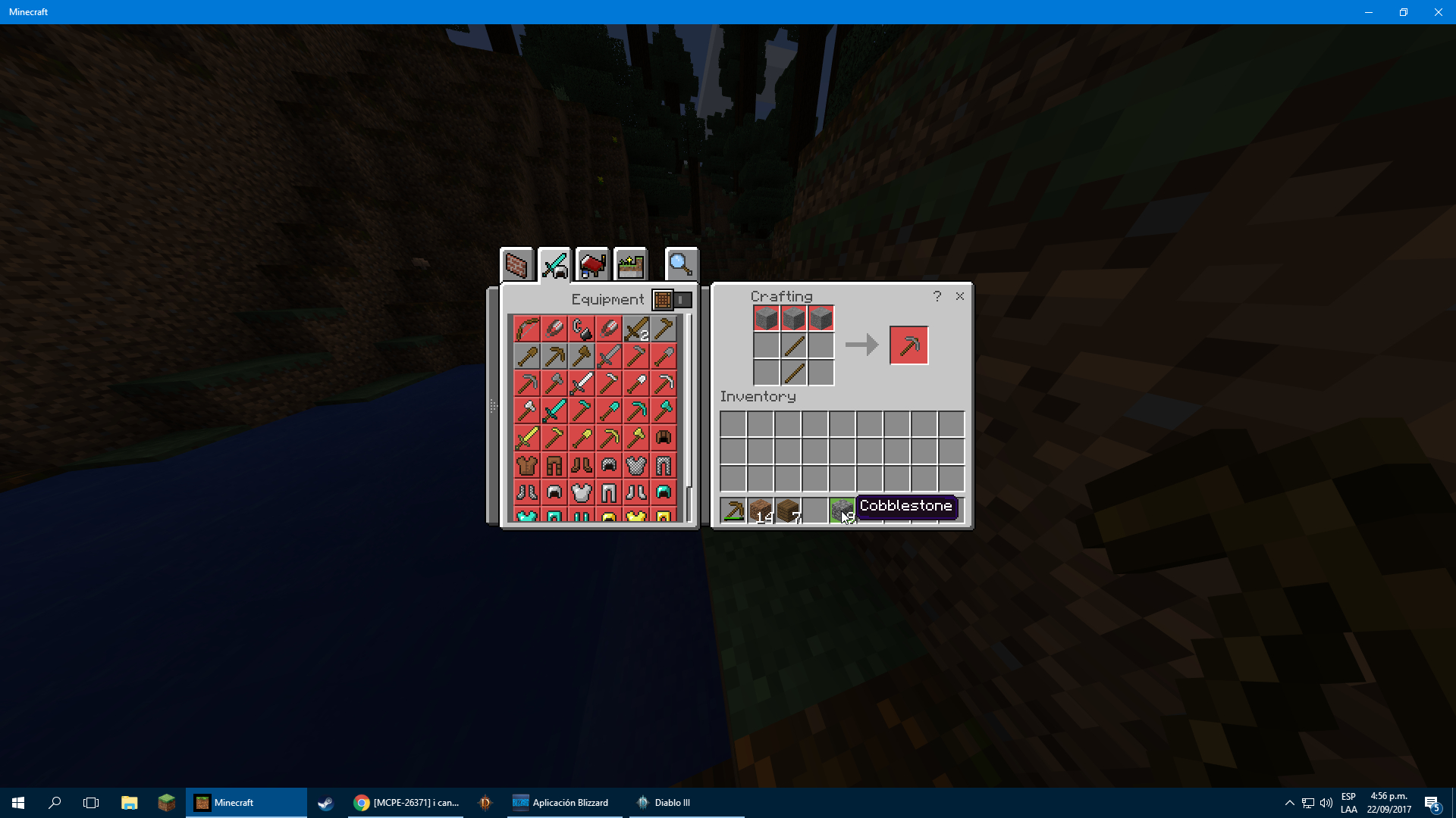 I have a problem, on win 10, 1.2 (bedrock edition), I cant build a furnace or a stone pickaxe with cobblestone, the recipe shows stone, and I cant get stone becouse I cant make a furnace to burn the cobblestone.... I cant play it!!!!