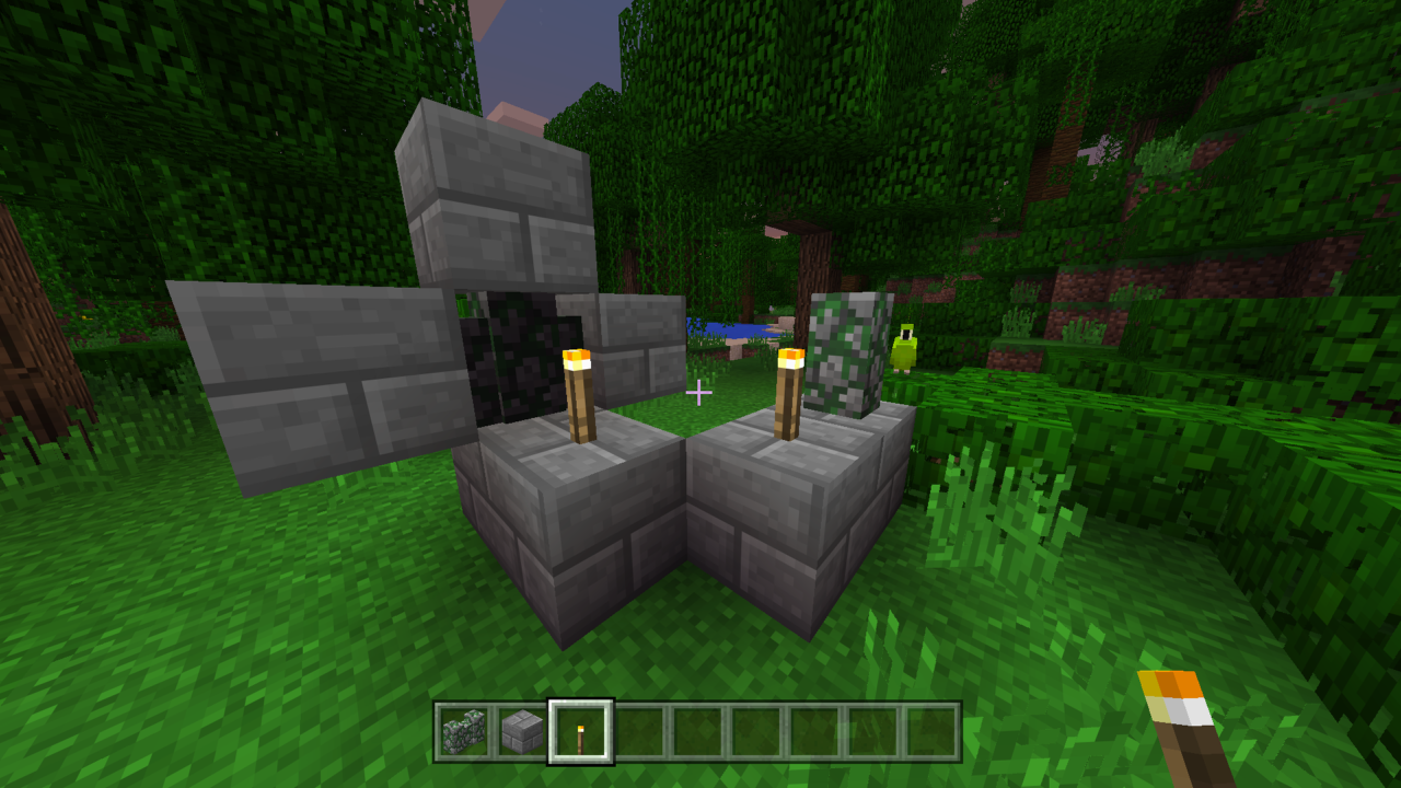 If you turn on Smooth Lighting, place Cobblestone Wall or Mossy Cobblestone Wall, and place a block to it's left, right, top, and bottom, the wall becomes nearly black. Even when you place a torch or other light source in front or behind it, it still pretends there is no light at all. Pics below are taken with smooth lighting on and brightness maxed out.