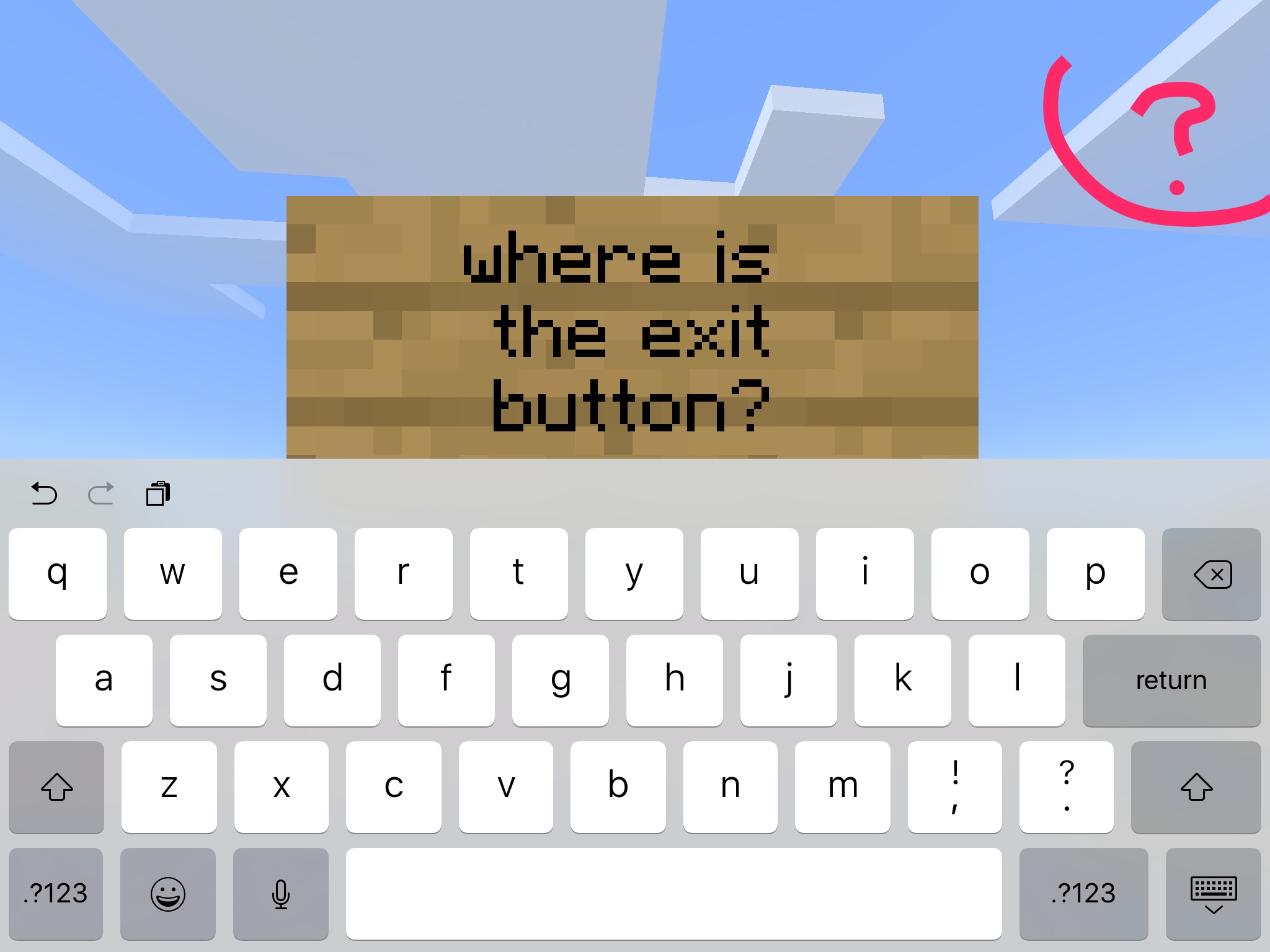 when you type three lines on a sign the exit button disappears