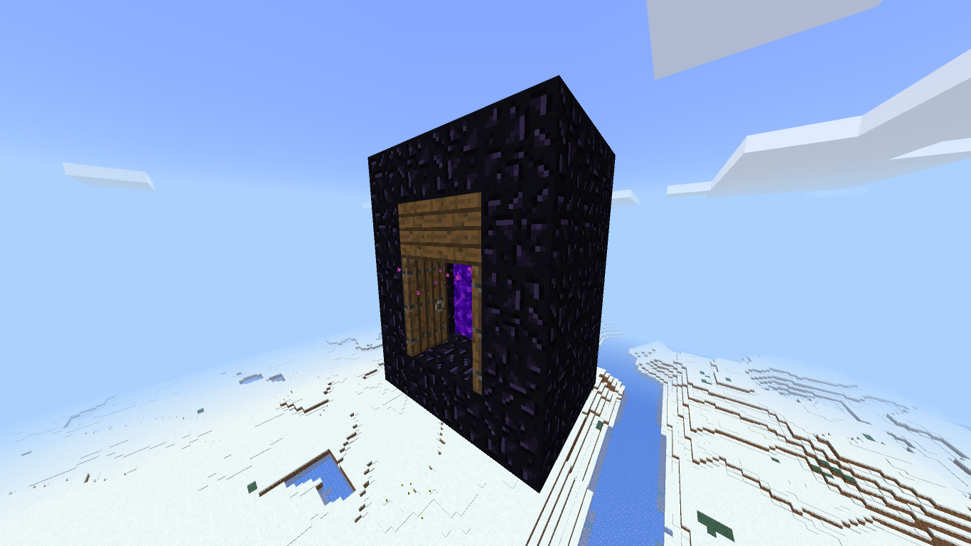 My player is between two open doors placed right next to a nether portal. The whole thing is cased in obsidian except the block above each the door is planks.