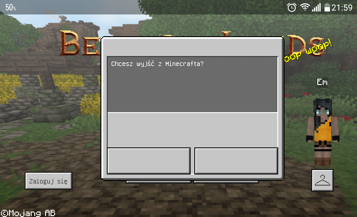 Ever since the 1.2 update, when I try to leave the game, the window with 2 blank boxes appears and I can't press any one of them. So the only way to quit is by pressing the Android key listing all active apps and then manually press "x" on Minecraft tab. The same issue is when I tried to set some settings to my Xbox Live account than pressed "back" and Minecraft showed another popup window informing it won't save changes. Again, there were 2 blank unclickable boxes.