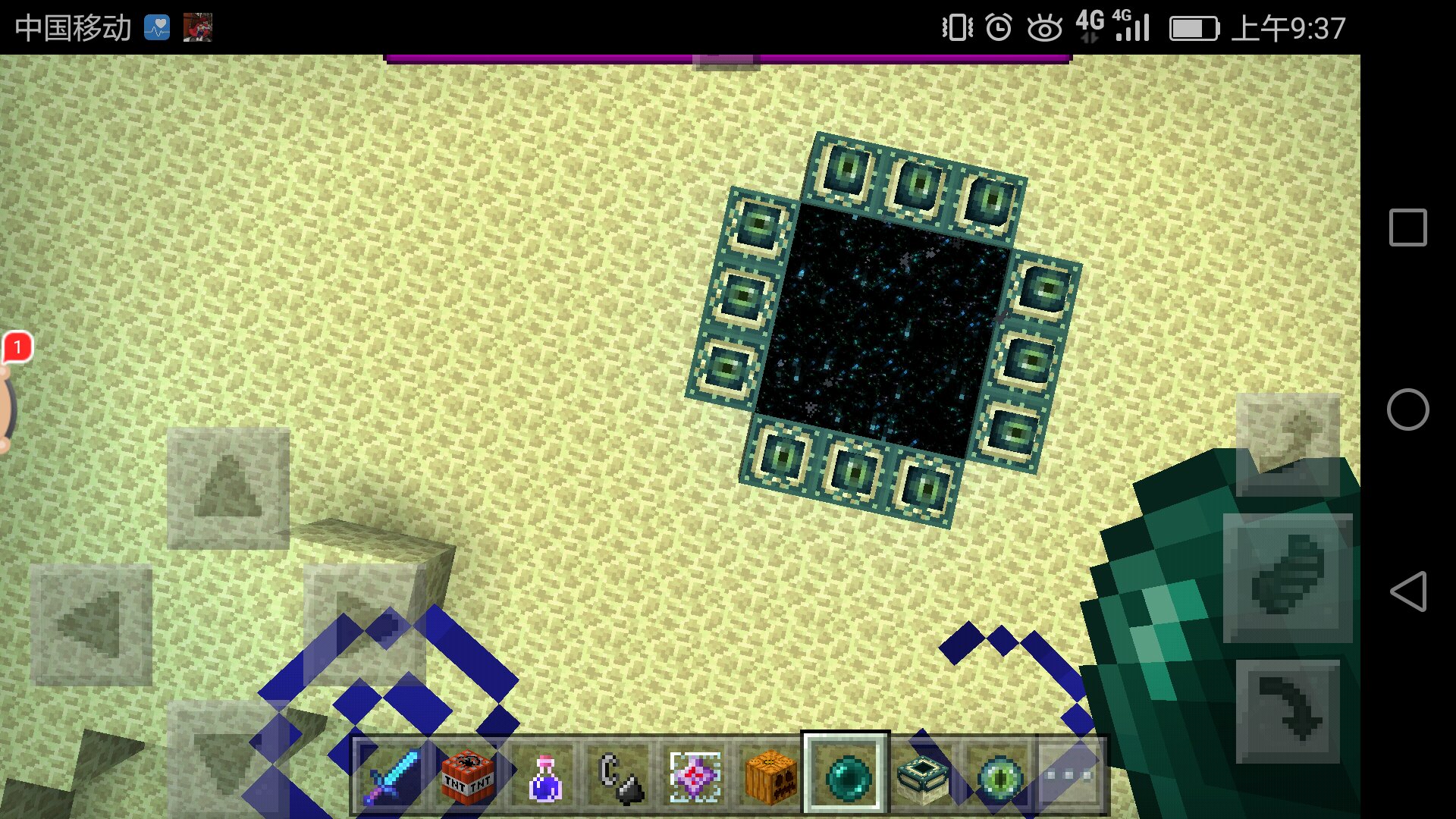 Built End portal can teleport players back to the Overworld when the End dragon is still alive. This shouldn’t happen. Not sure which version is actually affected and this bug occurs in Chinese version of MCPE.