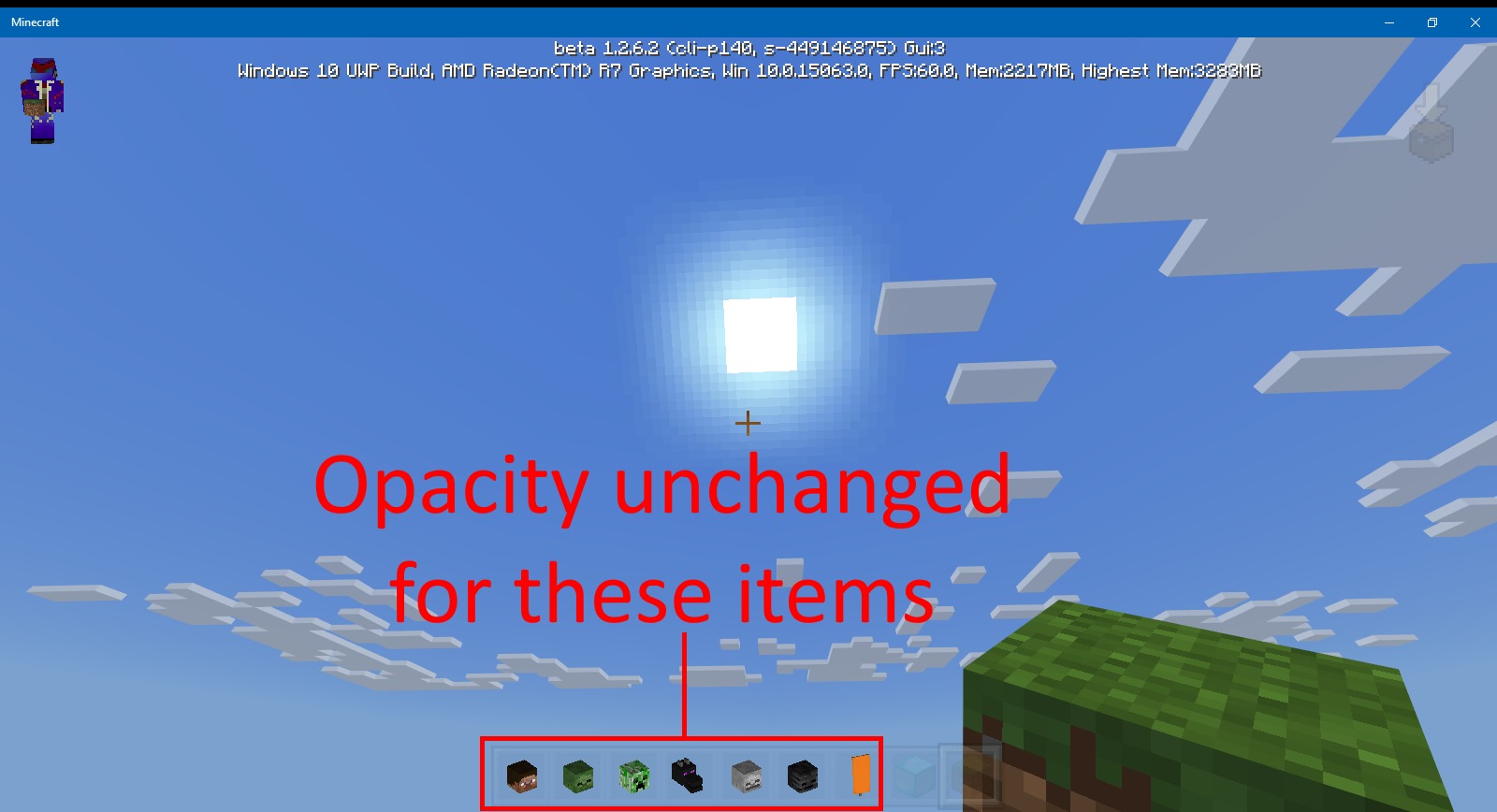 -After getting any mob head, turn you hud opacity to the lowest setting available. Everything will become transparent except for the mob heads