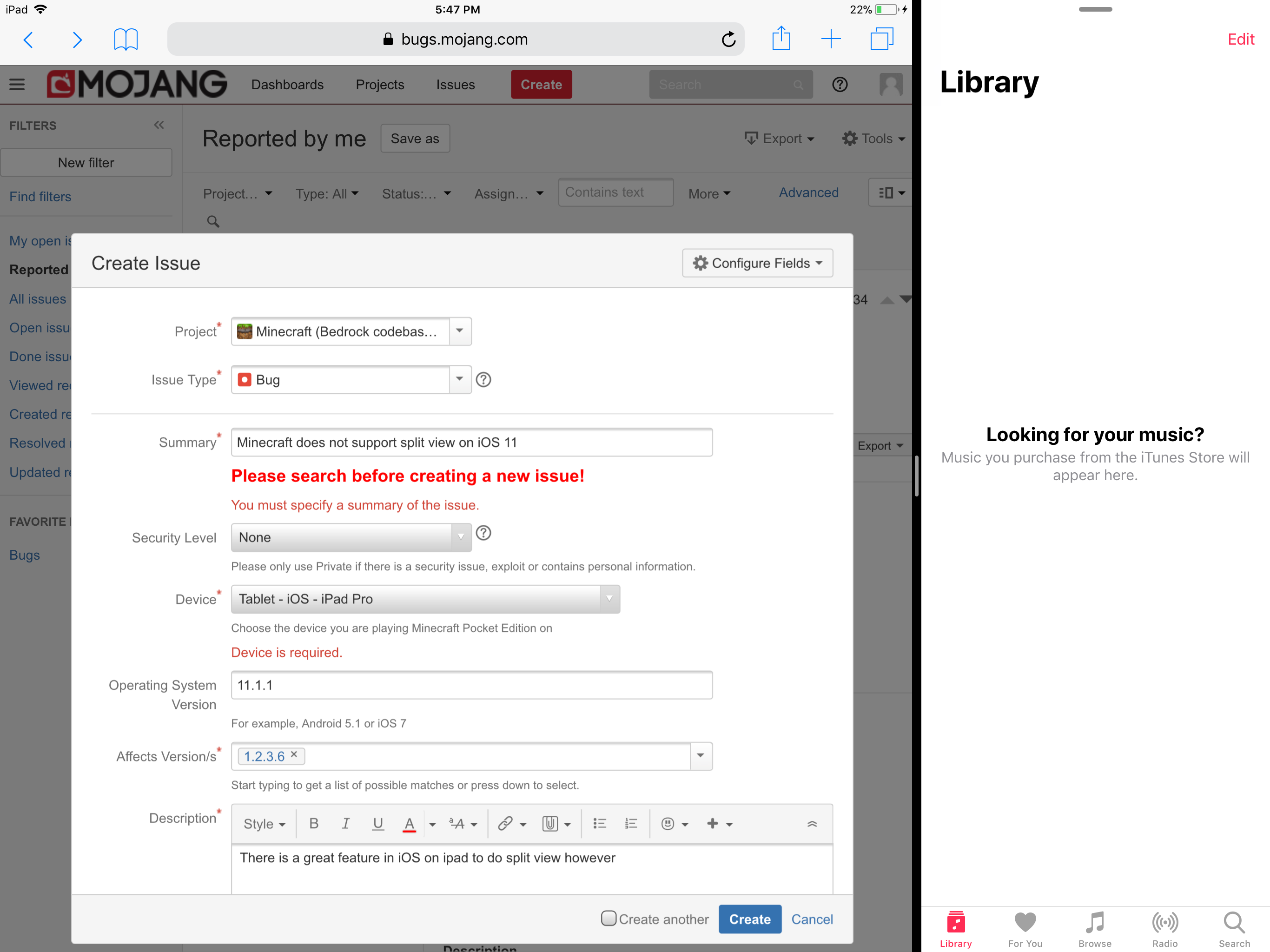 I dot think there is a need for split view. It would be sort of awkward playing Minecraft in splitview