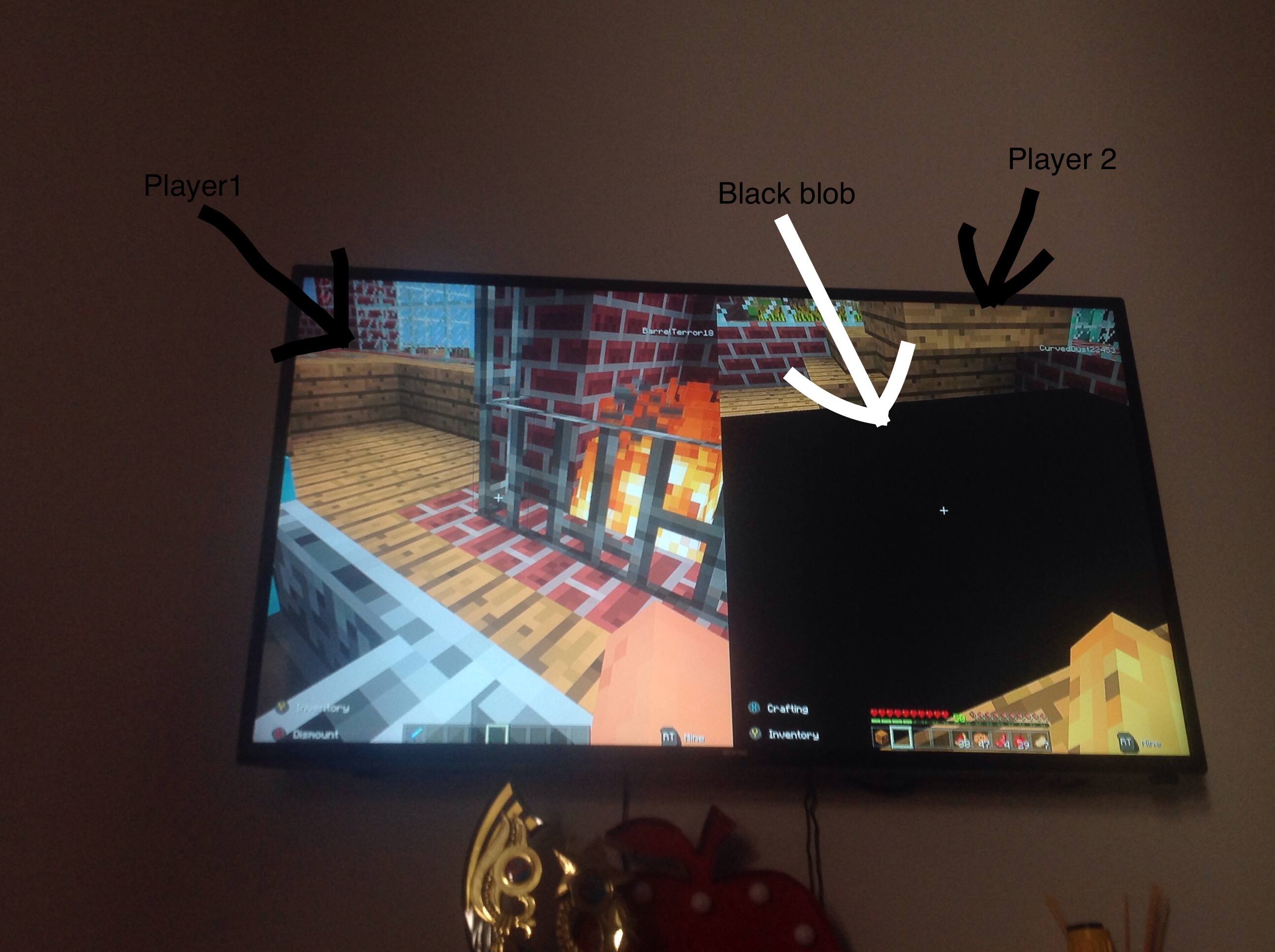 Black lumps across player 2's screen when another player is in a minecart, boat, etc