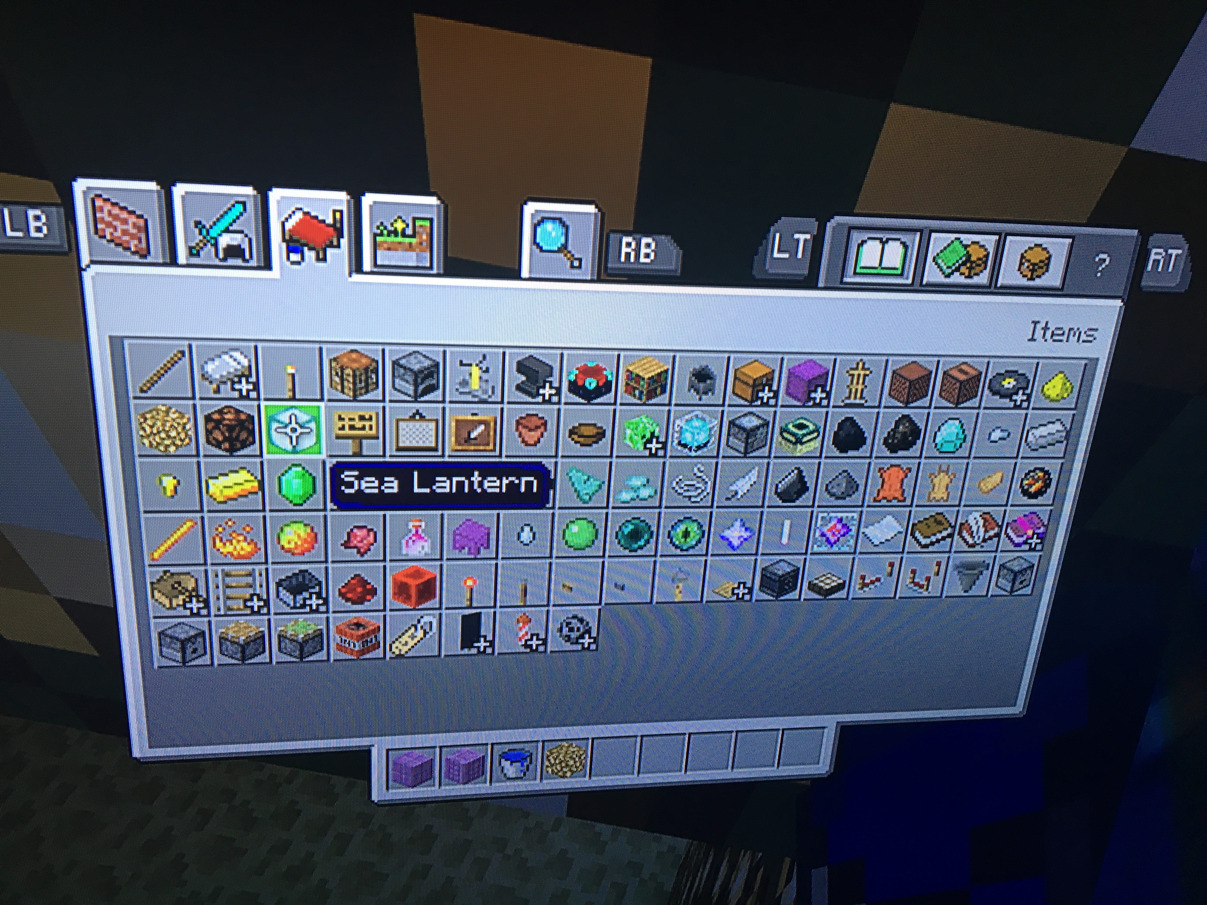 When searching for Sea Lanterns, they show as being in the "Construction" tab. When they actually are in "Items."