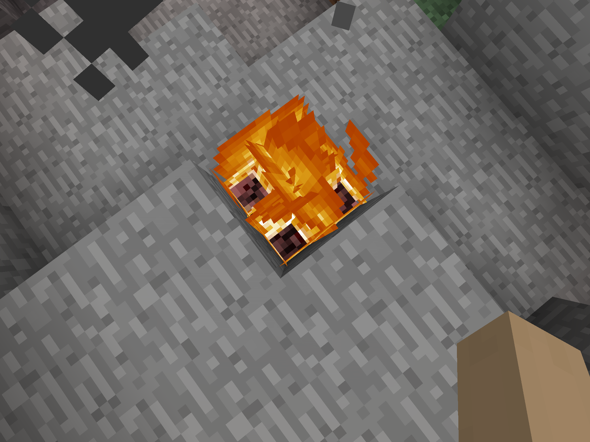 When walking, jumping, landing or sprinting on top of (not inside) fire, the sound associated with wood-type blocks is played.