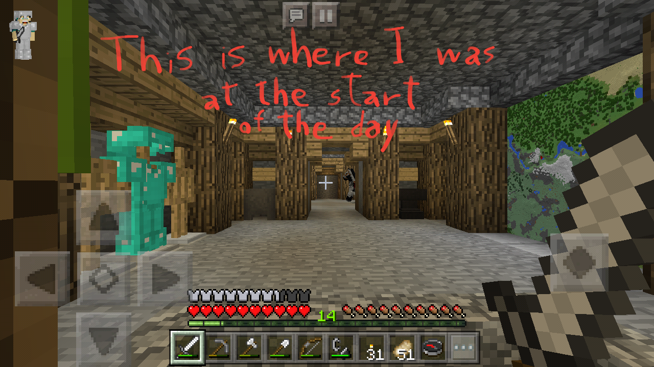It seems as if Minecraft is either not really saving the game or reverting to a saved backup when you open it. If it is not saving successfully, it might be because you don't have sufficient storage space on your device for the new save files. (The thumbnail is probably just overwritten and doesn't require any additional space, so that part works.) Can you free up some space and try again?