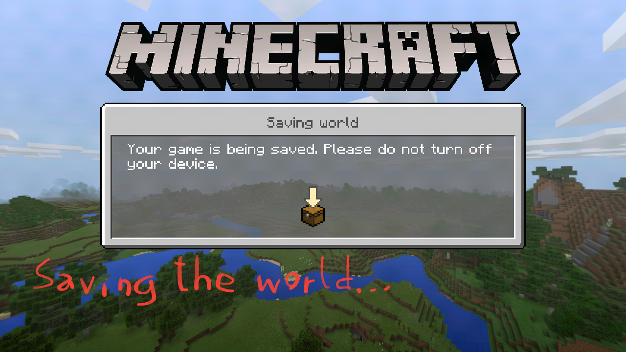 I save the world by pressing the "Back to Menu" button, without closing the app or turning off the device.