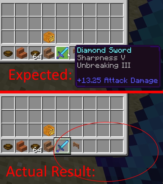 Item's description will cover items in hotbars that can't able to see items in hotbar make so ver very annoying please back the older class UI we don't like this worse feature back the class ui just like the UI before the 1.2.13 and also some UI ruin the game just like the create new world UI, oldest UI is better