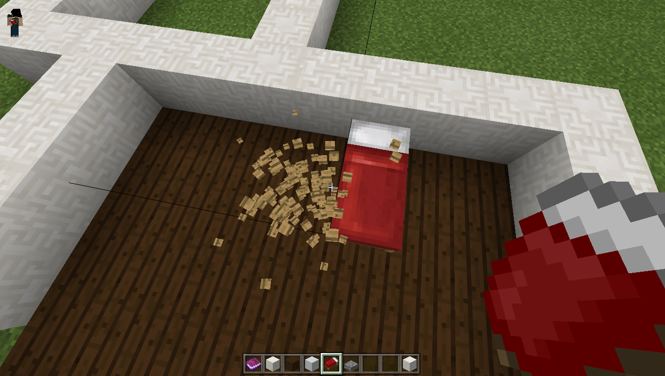 If you place beds, their border line or selection box is bugged and seems to be widespread specifically along the x and -z axis. This happens only in split seconds. It can be observed better if you break and place a bed again and again.