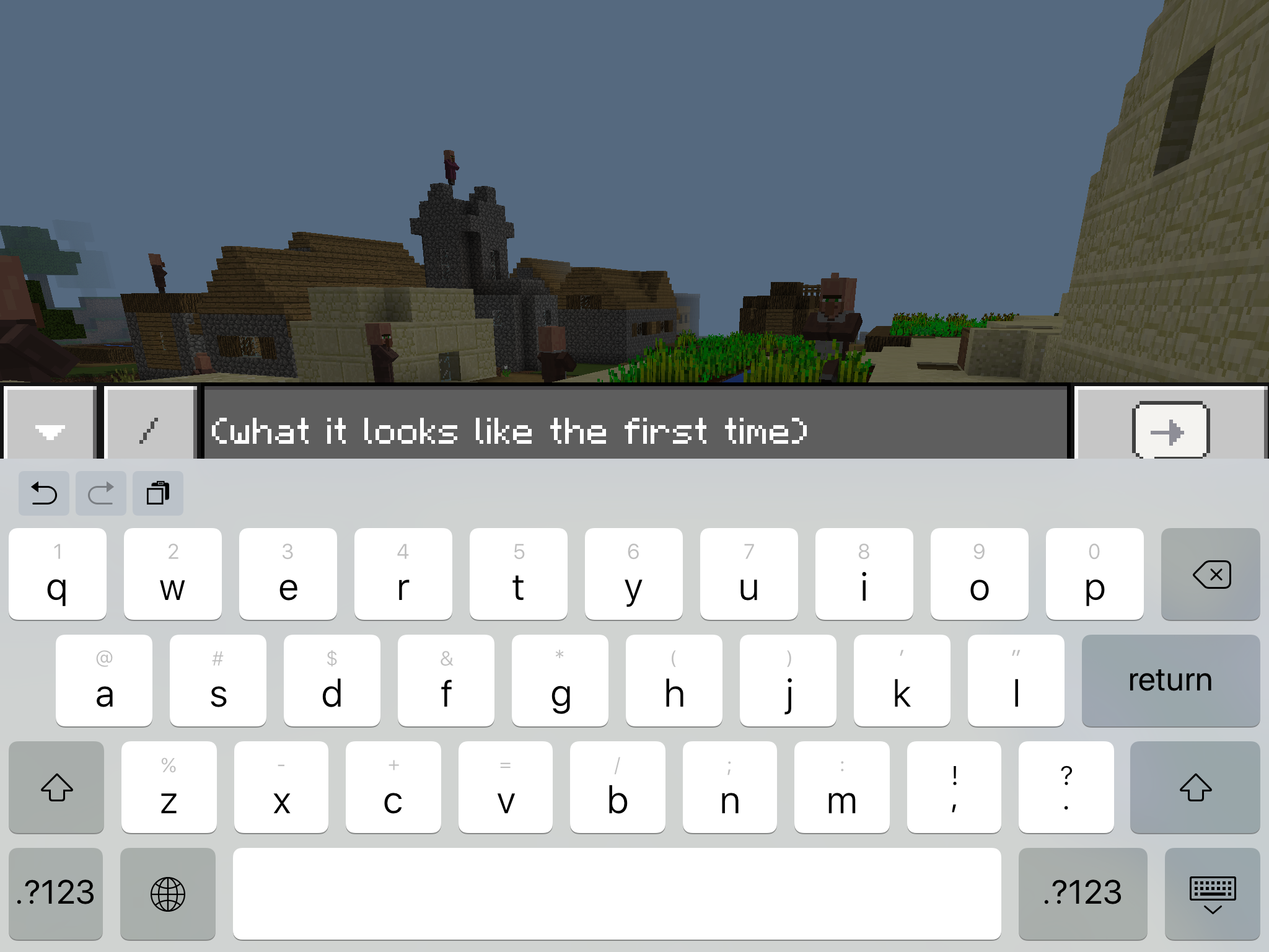 When I go to write something in the text or command or sign, or anything else on the iOS version of Minecraft, the first time I type something into the box I can see what I'm actually typing, but for some reason, every other time I type after that, the box where you type into goes to the bottom of the text page, so I can not see what I am actually typing, or if there are any spelling mistakes, you can't see it. I think this is considered a major bug, and I think it will need to be fixed right away, because I use commands and all that quite, often, and it is highly annoying not to see where I am up to 😀. P.S. just a suggestion, can you also please make it so you can go back and forward in the typing, so that when you make a mistake, you can just go back to it, without having to delete the whole thing and then write it all over again. Just a suggestion 🙂
