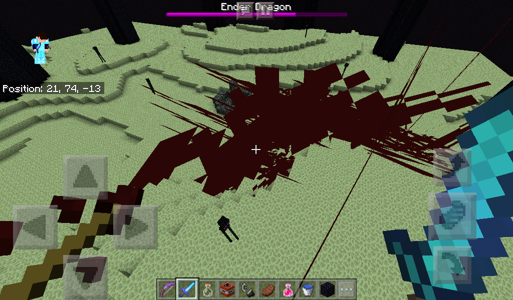 Side note: this causes an immense framerate drop, which leads to me not being able to fight the Ender Dragon. May be a device issue, though.