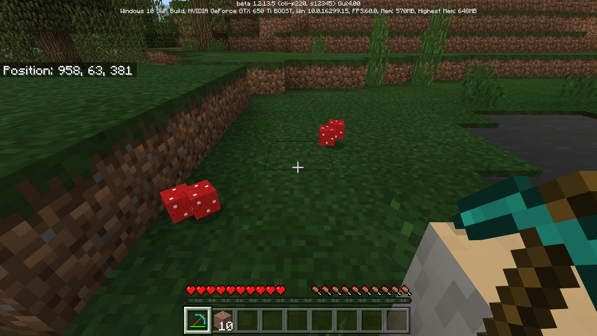1. Create a new world and use seed 12345 location 951 79 357 to find huge mushrooms (to speed up the test)