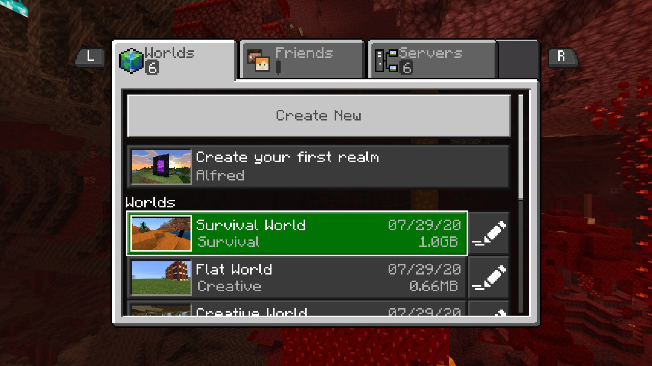 Two days ago we went to the "new" Nether World and explored 3 or 4 biomes, two-to-three hours. We wanted to play the day after and got the issue.