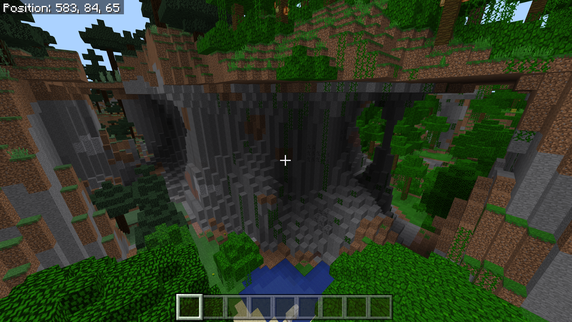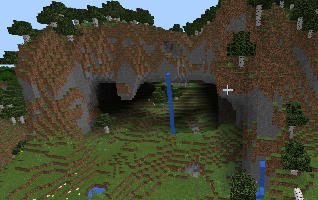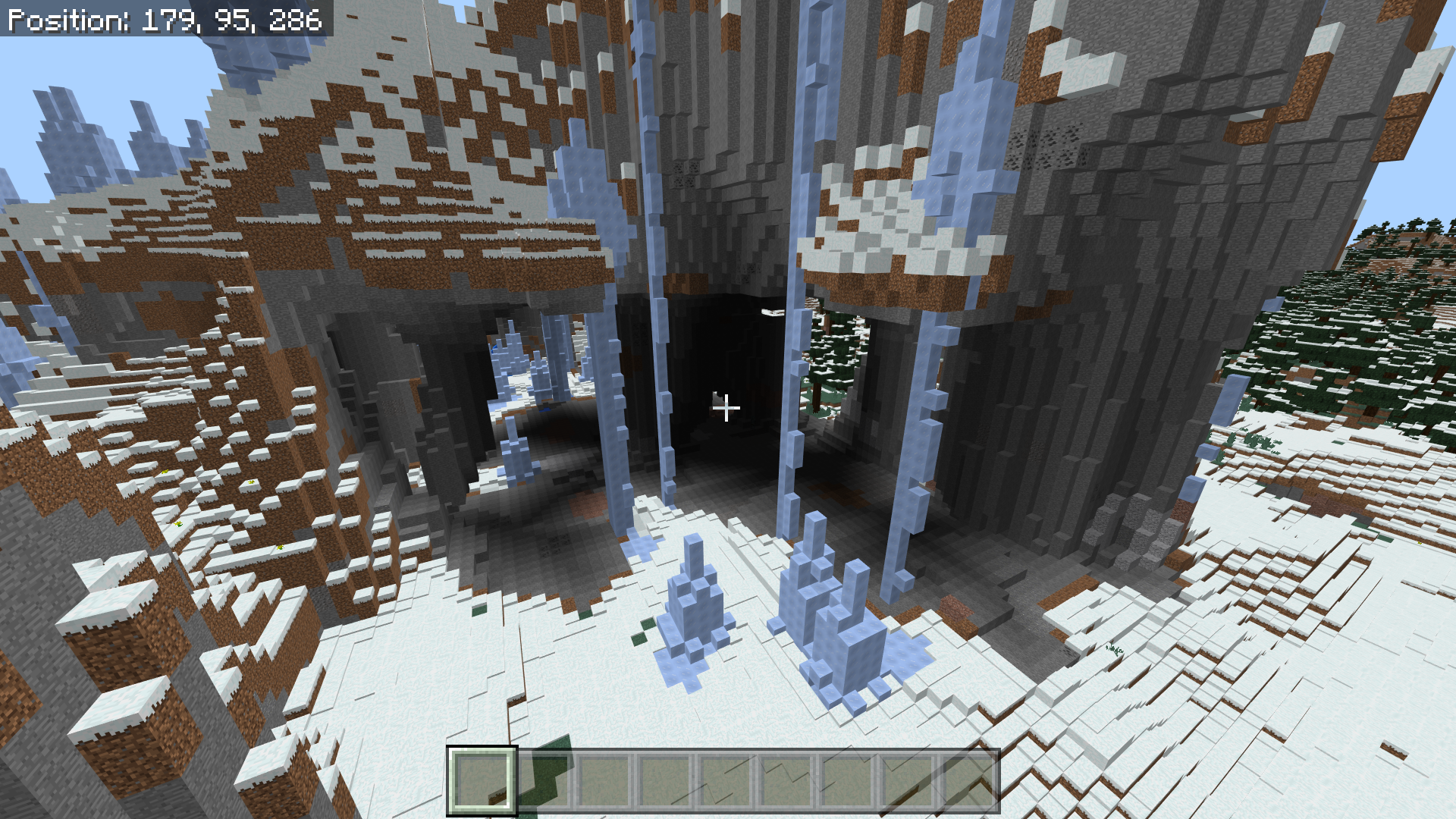 As for the aesthetics, a lot of people, including me, really think this would look a lot better if the stone was replaced with Dirt, Course Dirt, Podzol, or even covered in a new Moss layer block which would look more like real life where grass and other greens can grow under decent sized overhangs and arches. Maybe even have Ice blocks under overhangs in cold biomes to create icy caves which would be really interesting or just put full snow blocks back again.