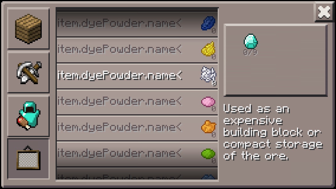All wool blocks and dye don't have the right name