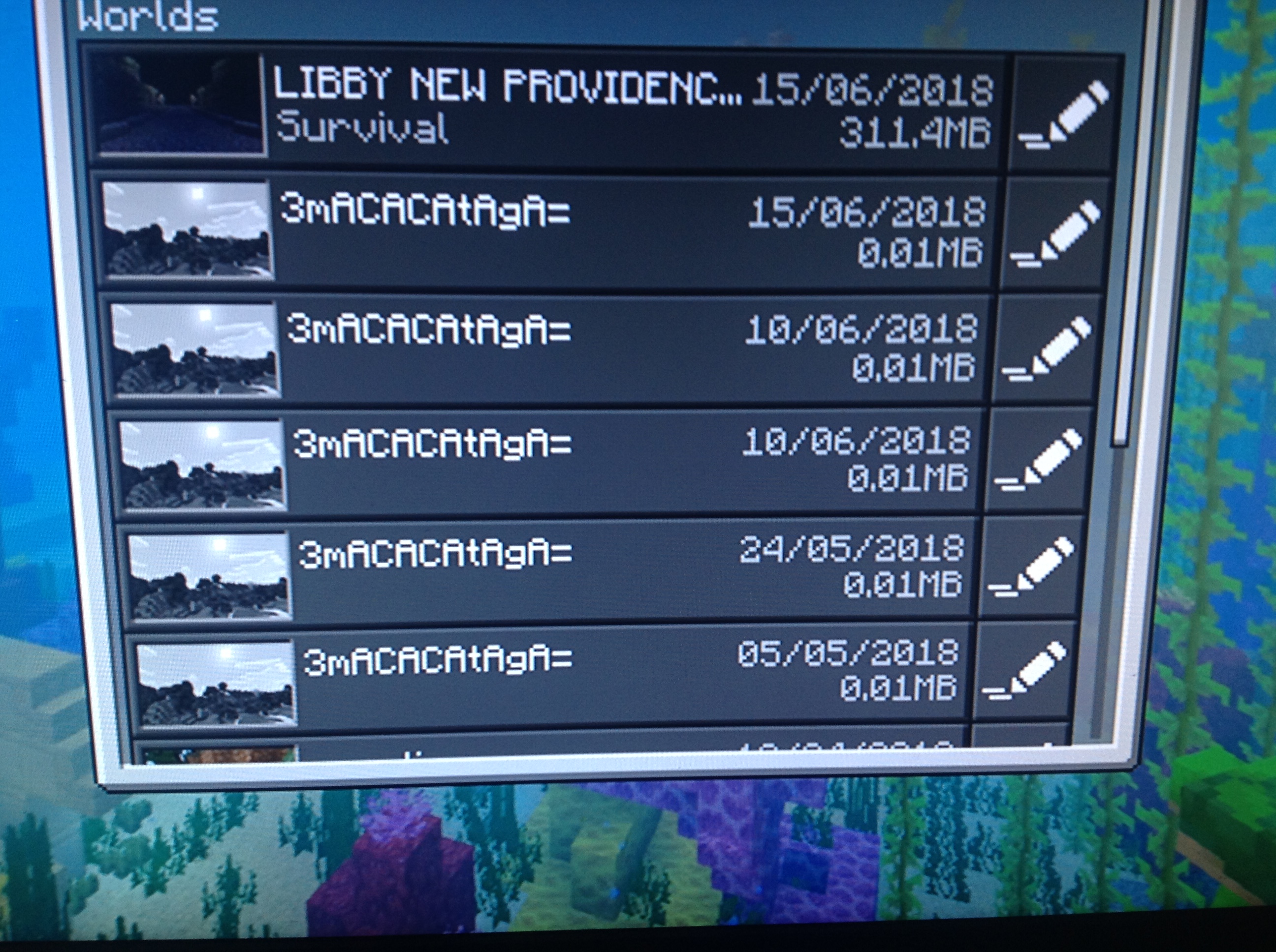 Worlds have been deleted/changed after update. All have been renamed 3mACACAtAgA= And have a save data of 0.01mb. Will not open and game crashes when trying.