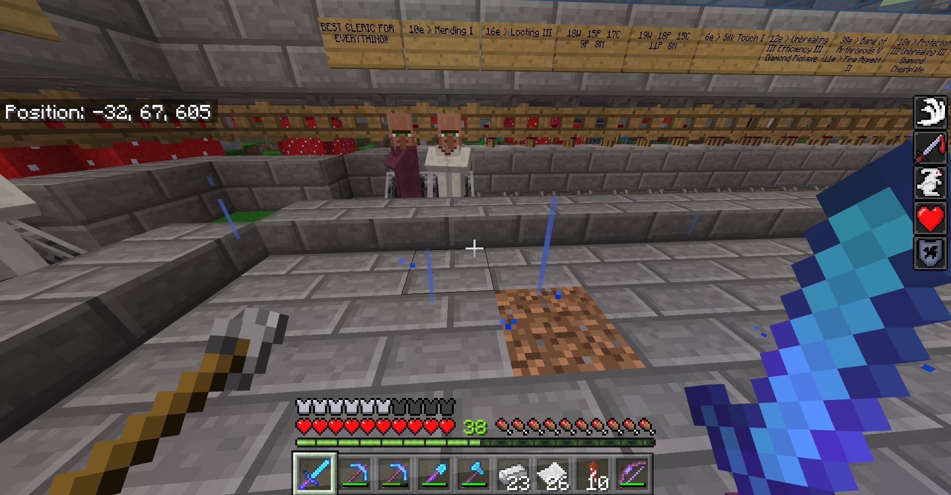 Occasionally mobs don't render when in nearby chunks. This is most obvious in my villager trading hall where entire rows of villagers within a particular chunk won't render when viewed from a particular different chunk, either adjacent or adjacent +1. When you move out of the affected chunk into a different one all the villagers suddenly appear, they also make their honk noise as if they weren't just invisible but weren't loaded. I have found this also affects hostile mobs. The issue tends to resolve itself after a reboot but leaving the game and restarting Minecraft does not fix it. Another characteristic is that often the villagers who ARE visible appear with their backs to you no matter how close you are. I will attach a screenshot or two to illustrate.