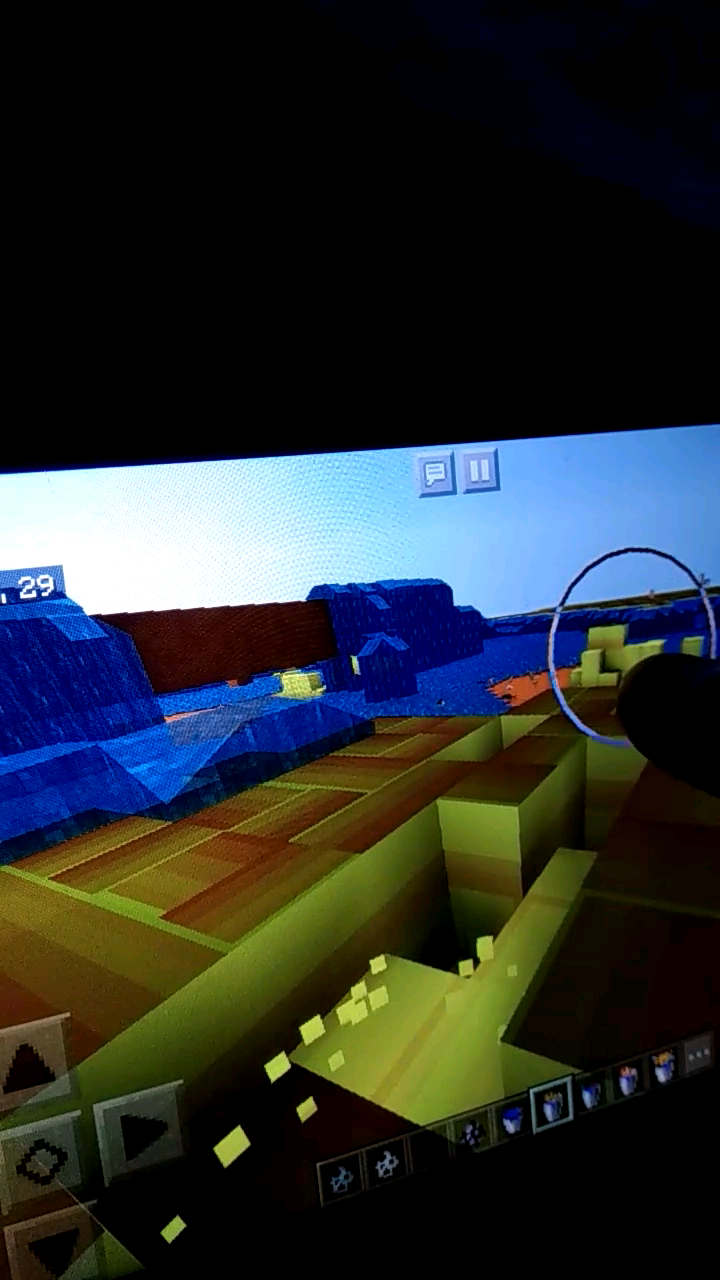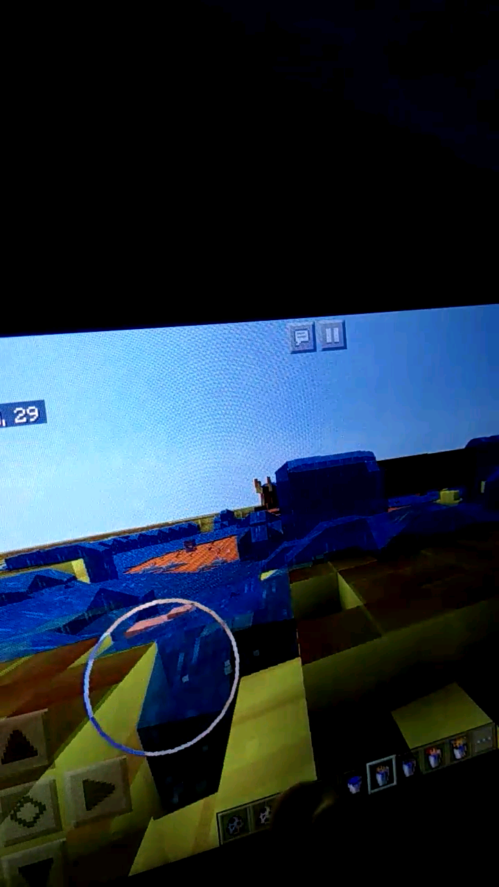 So it's 3 am and naturally I'm bored. So I just started spawning as many animals as I could and then I blew everything up with tnt. This was all on a flat world so you could only destroy the world so much until you got to bedrock. When I had a large pit from all the tnt I used, I decided to fill it with buckets of salmon, tropical fish, cod and pufferfish (which are new to pe right?) And then all the sudden the world glitched and turned green. After lagging and being temporarily frozen for a few seconds everything turned orange and yellow. All the blocks still had their names, but their dig animations were gone and everything was a strange yellowish orange color. Placing blocks is very laggy. Trapdoors, doors and chests are all the strange yellow-orange texture. They even appear as the strange yellow-orange color in the menu as well. I got low quality pictures of it with my phone since I'm not sure how to take screenshots with my fire tab.at one point you could see these weird green lines that i didn't get a picture of. I closed Minecraft and restarted my device. After that everything was fine. I just want to make sure that this never happens again.