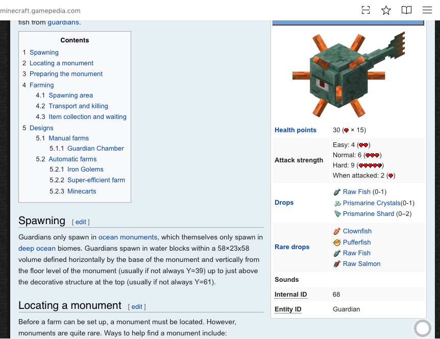 wiki:guardian spawn naturally only in and around ocean monuments.