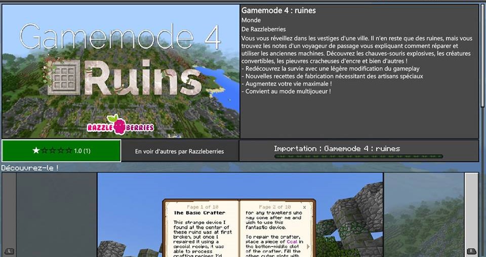 Today i've purchased the world "Gamemode 4 : Ruins". After the download import remains permanently at 0%.
