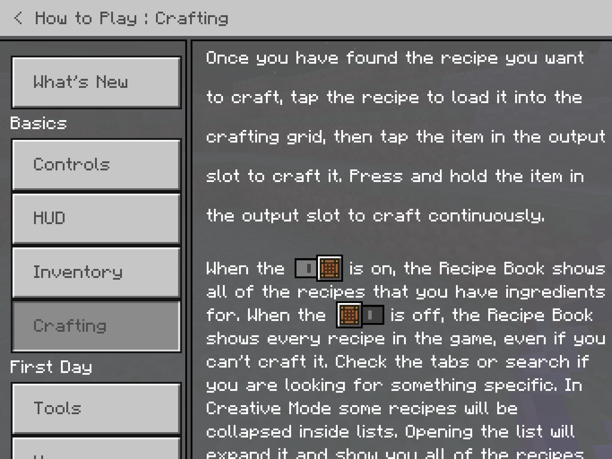 However when using either classic or pocket touch settings, this does not work. Instructions are given in the how to play menu on how holding on items in an output slot should craft all possible items, but this does not occur.
