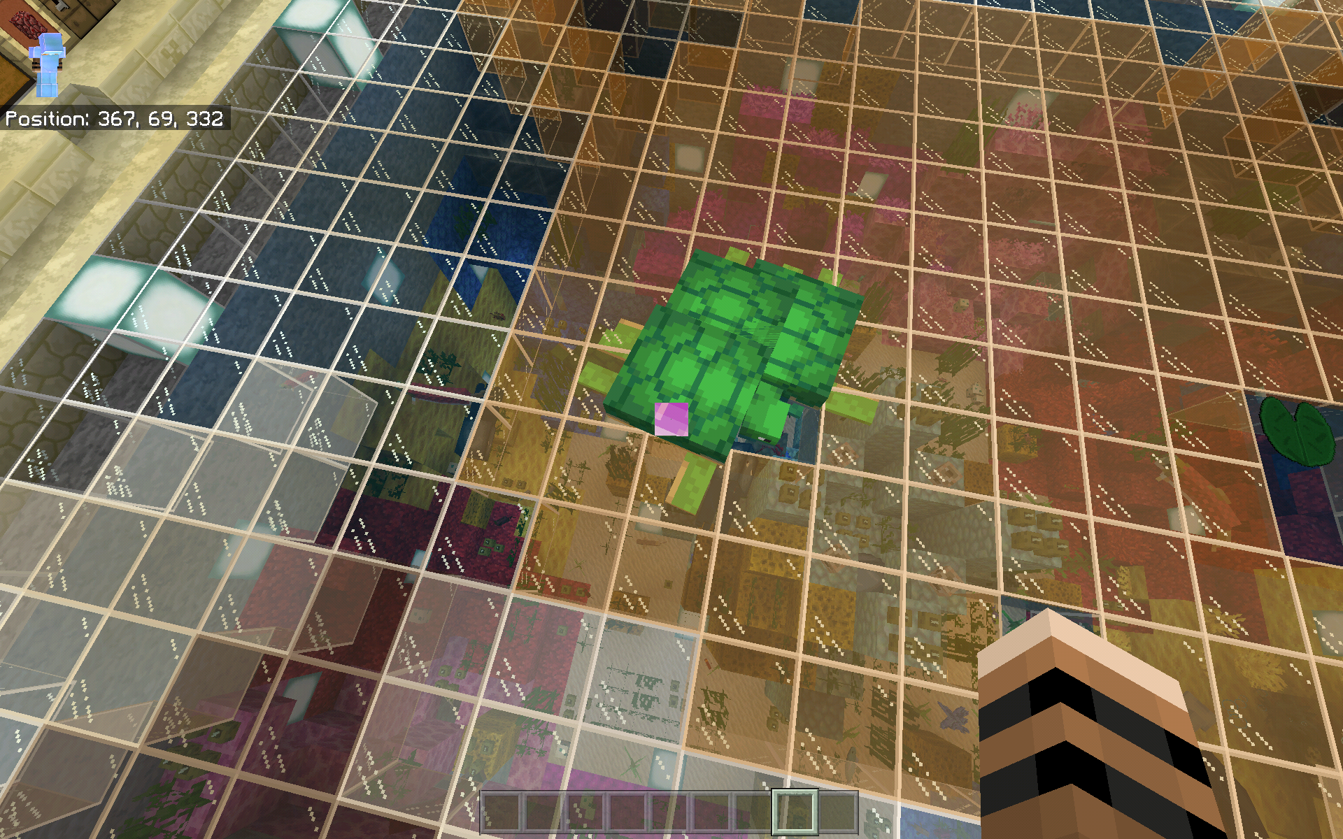 To recreate just make an aquarium any size should do with a 2×2 hole on the top with water, place a lilypad on 1 of the source blocks