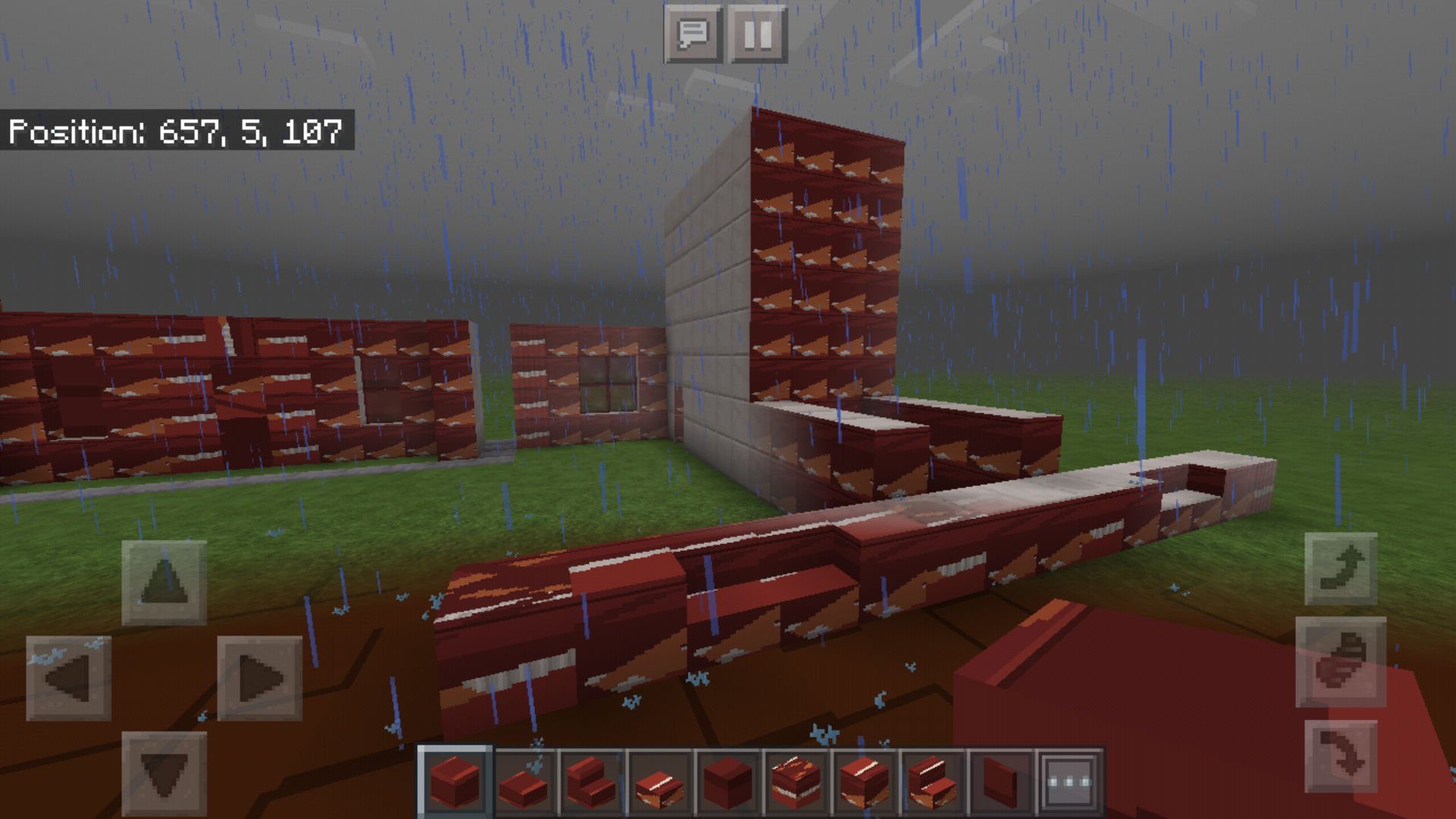 I was playing in a superflat world and I had paused and my phone's screen turned off as I was not using it when I turned it back on, and closed the in-game menu it was randomly raining (probably a coincidence) and strange red smothery textures appeared on blocks I built but not on naturally generated blocks. I pressed the save and quit button and the word Minecraft appeared normally as if I was normally exiting the world but then it started flashing madly. I closed the tab, reopened Minecraft and it's okay now. I have a Huawei P10 lite. I hope you can fix it.