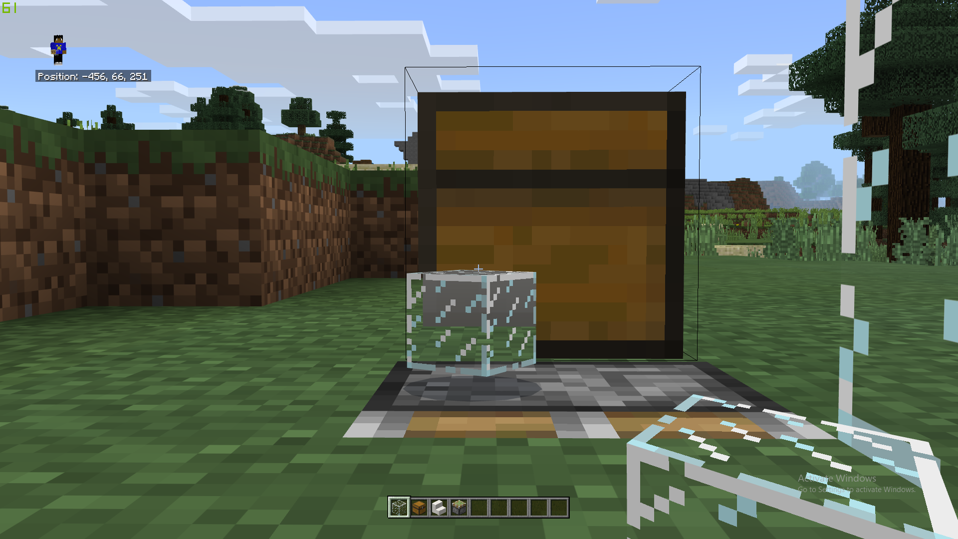Glass, when in item form, can be used to see through transparent blocks. That includes chests, water, ice, piston heads and glass itself. Some of the more recently added mobs like horses, illagers and all aquatic mobs are also affected by this