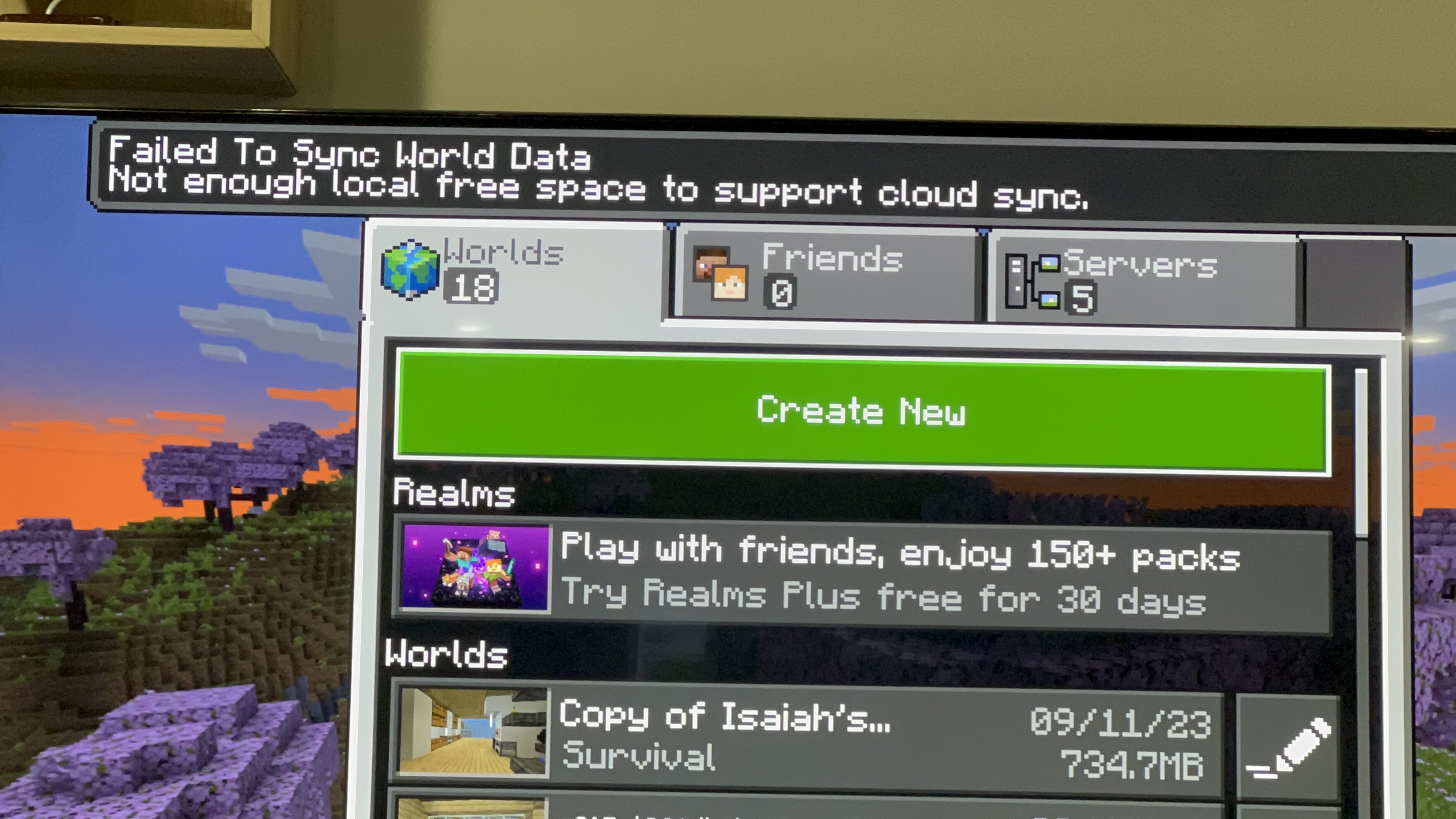 Minecraft will not upload large worlds. Once the world is around 1GB it stops the upload and says I need to free up more space. But I have lots of available space so it doesn’t make sense to me