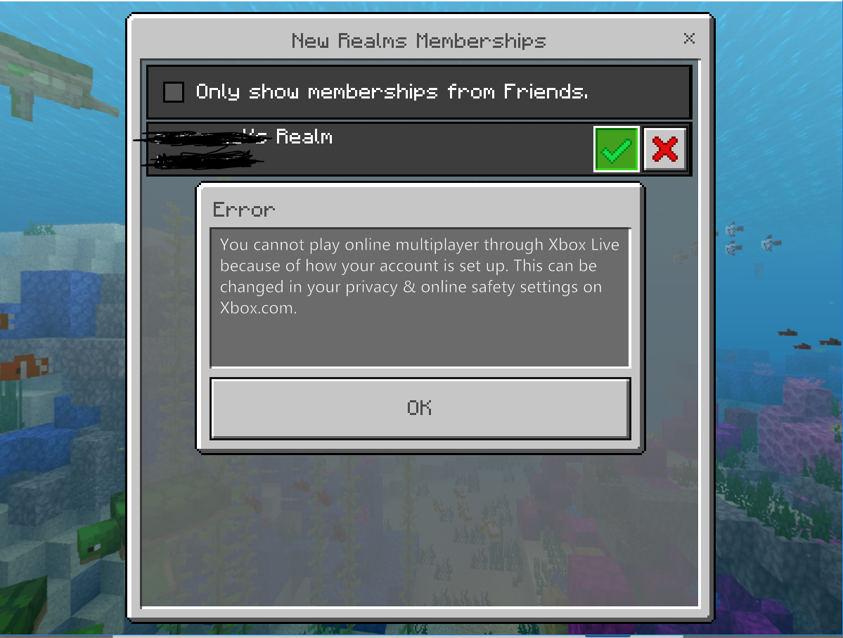 I am trying to join my friends realm but i can't even accept the invite to it. I have looked all over for fixes and nothing works through Xbox live.