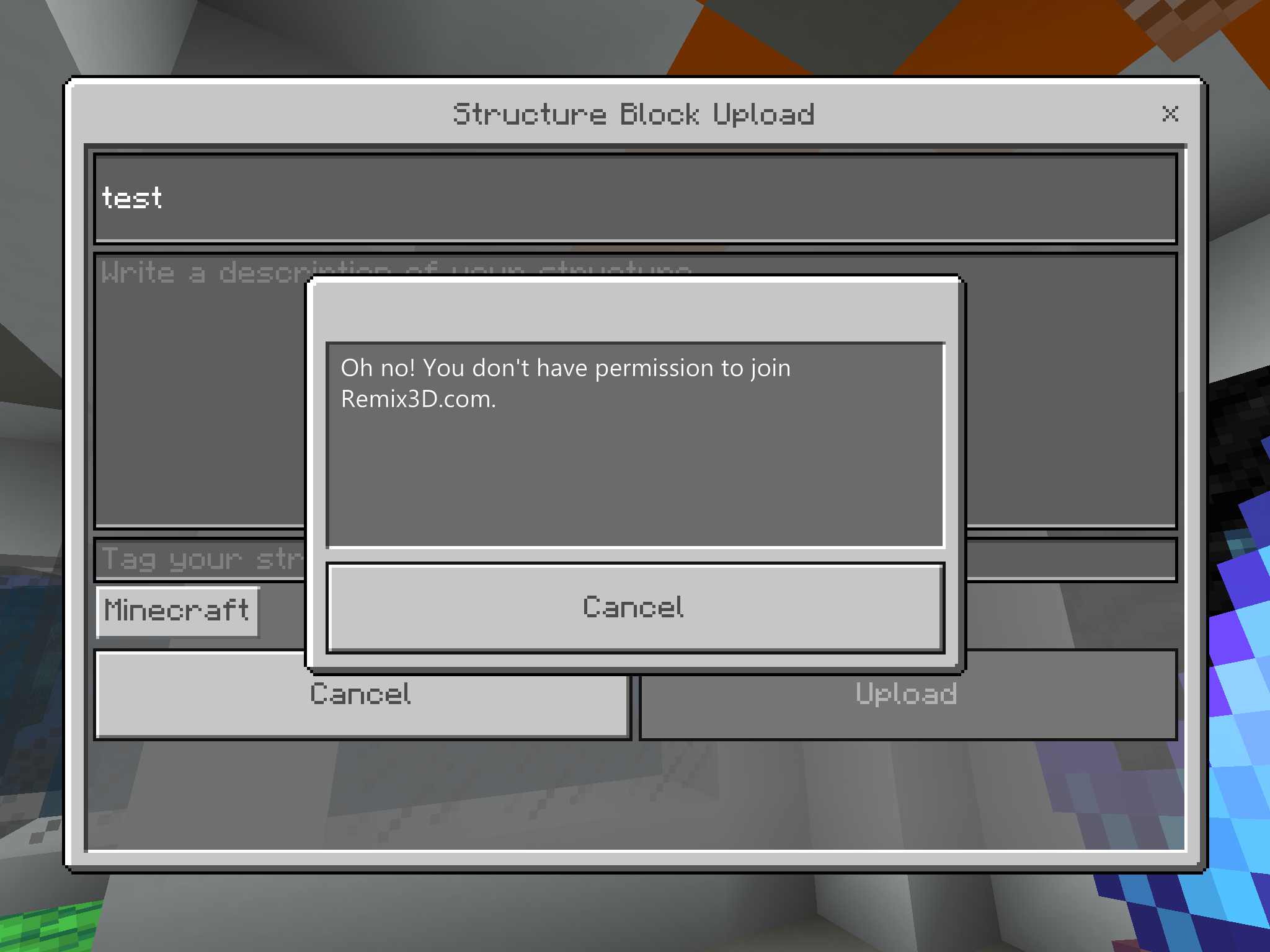 i am trying to move a naturally generated structure into a map I am creating but when I try to export it, it says “you don’t have permission to join remix 3D”