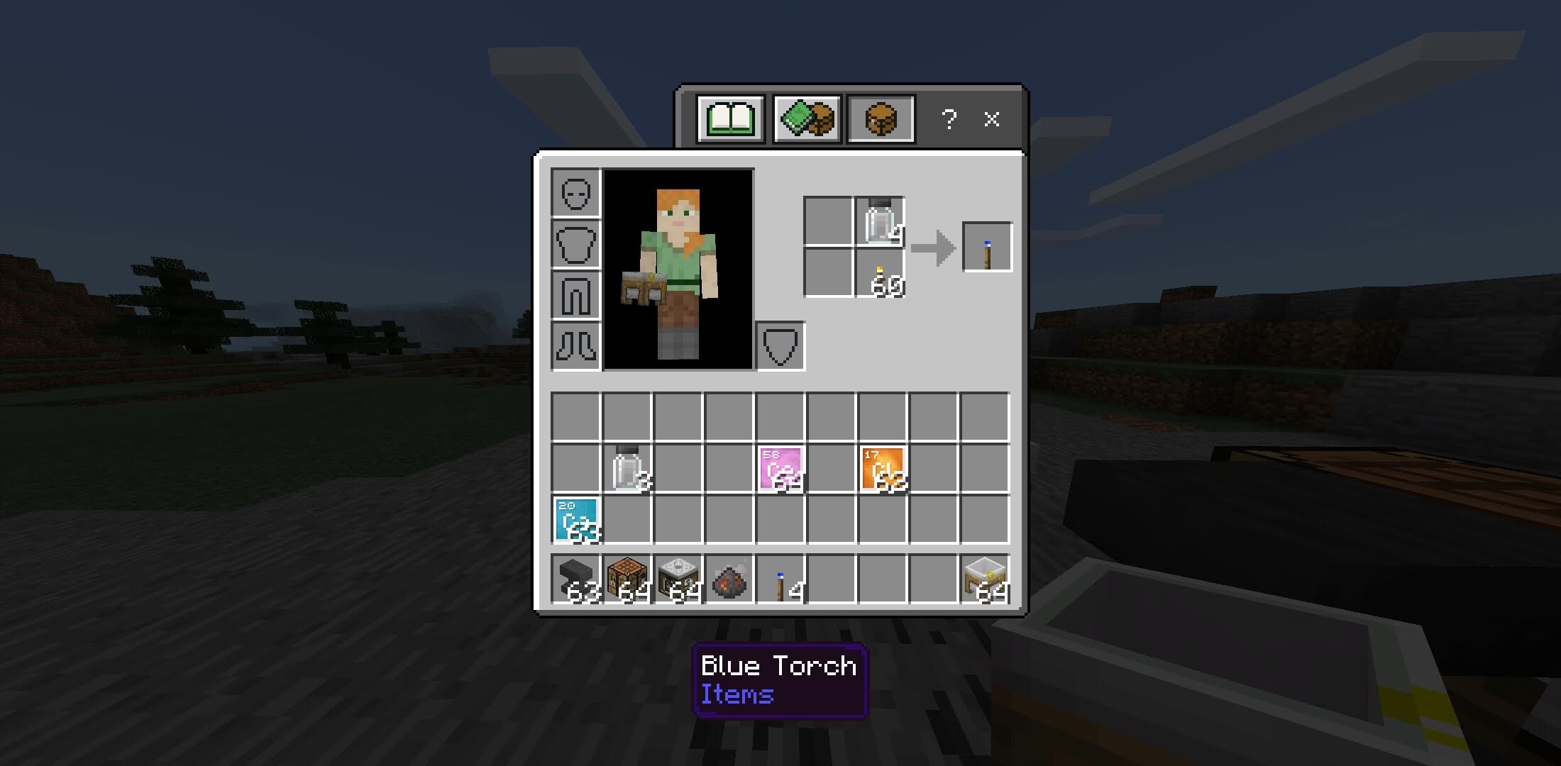 Coloured torches can be crafted using the correct recipe in worlds with "Education Edition" enabled: