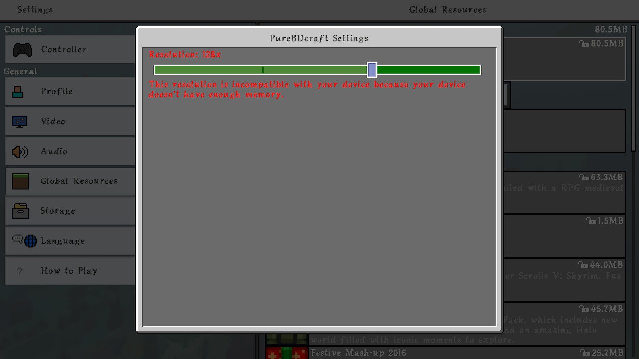 However, in the case with both Chroma Hills HD & PureBDcraft, 128x is now incompatible with the Switch and defaults to 64x. 128x was selectable in prior versions of Minecraft.