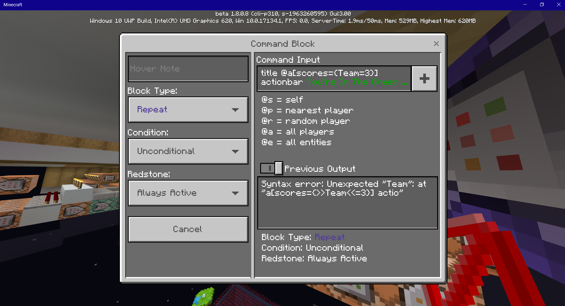 Since upgrading to 1.8.0.8 beta, the command blocks have stopped working.