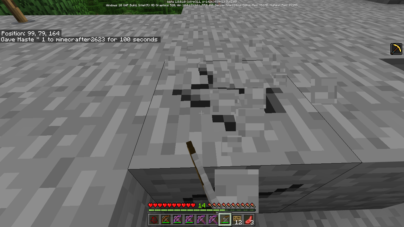 Haste like effect with the hitting animation without haste applied. Stacks with haste. Haste II keeps the player's hand in front of them. Both animations affected, 1st and 3rd person